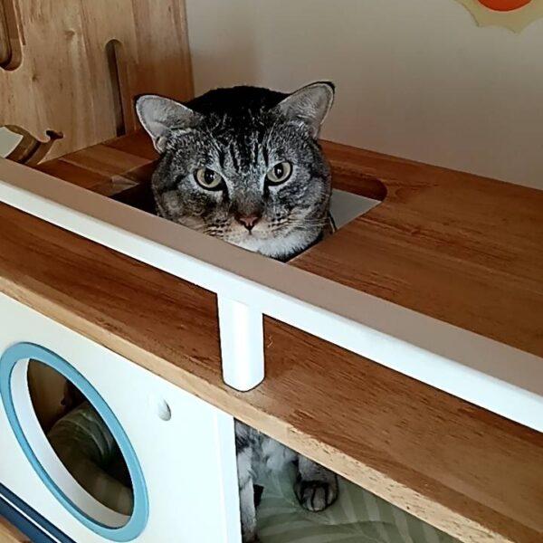 Easy to access and surrounded by everything your cat needs for a comfortable stay