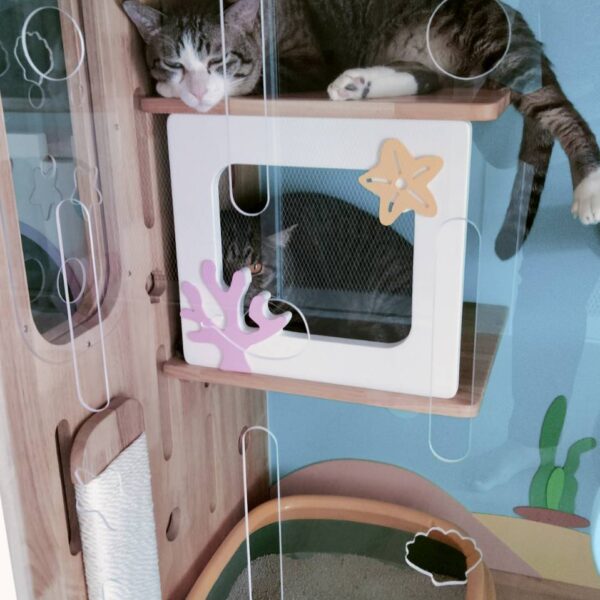 We designed the hotel with a beach and seaside theme, reflecting the relaxing spirit of Si Racha, a charming coastal town. Here, every cat can enjoy a peaceful stay that feels just like a seaside getaway. 🌊🐚⛱️