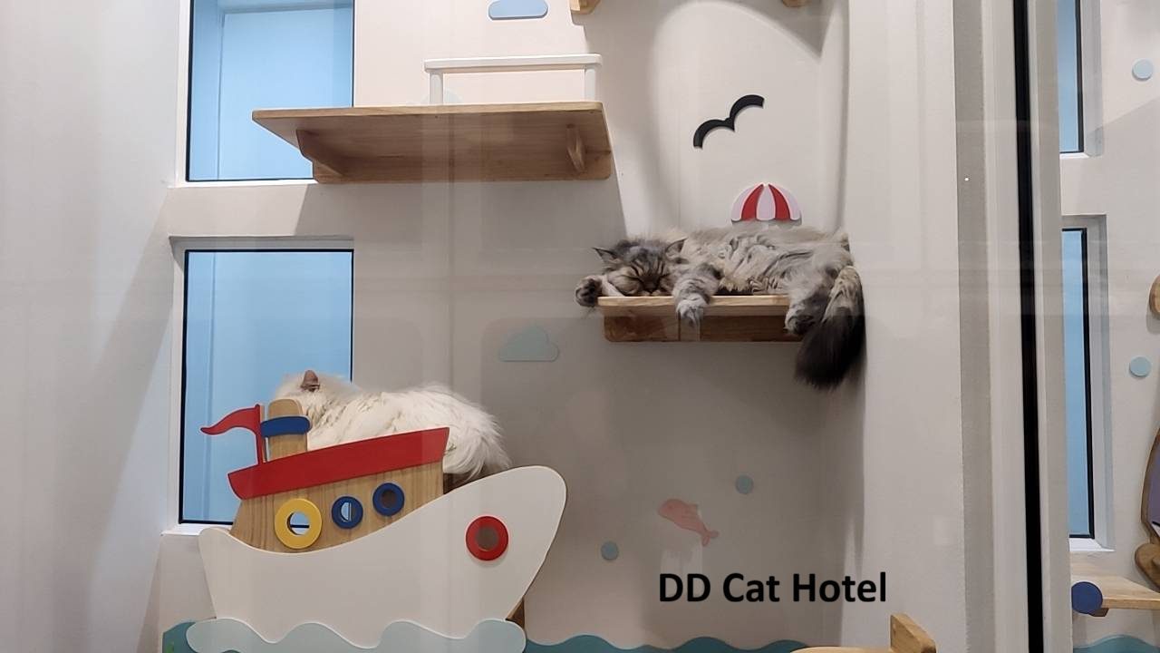 DD Cat Hotel – Cat Hotel in Sriracha was born from over 10 years of love and bond with cats. It all started when the owner took in two stray cats, Dao & Den (DD), and cared for them like family. That love inspired the creation of a “second home” — a safe, cozy place for every cat who comes to stay.