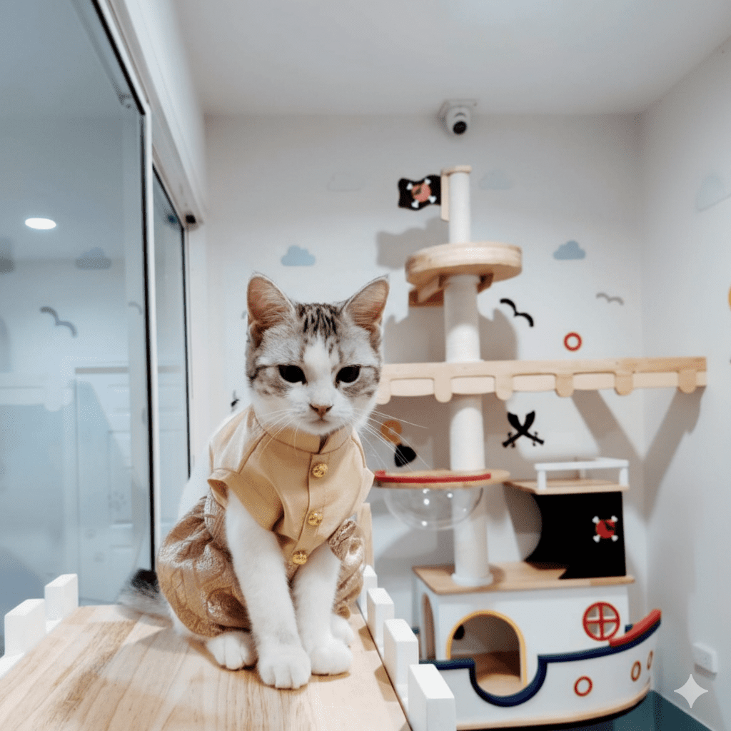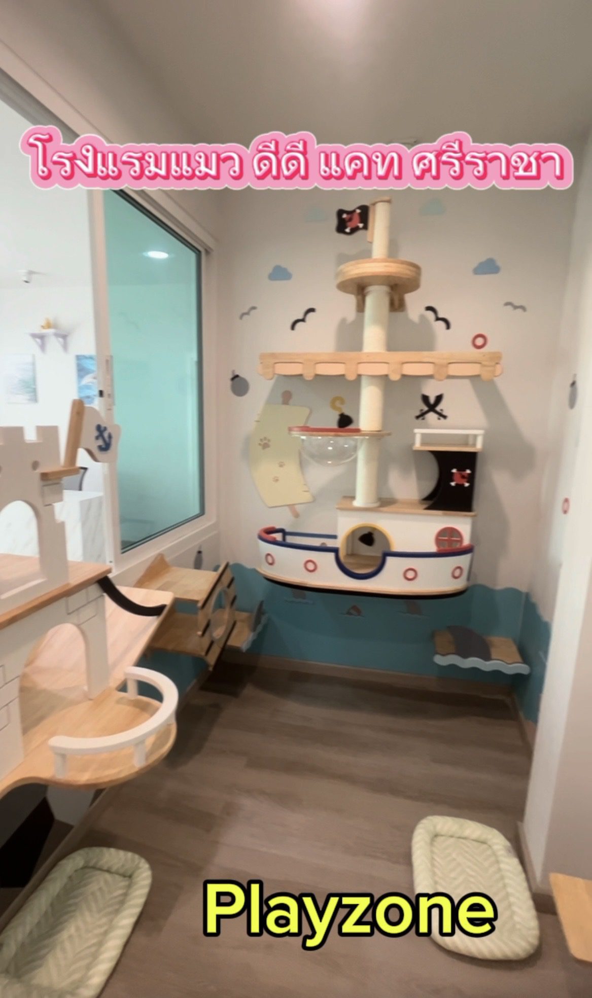 We designed the hotel with a beach and seaside theme, reflecting the relaxing spirit of Si Racha, a charming coastal town. Here, every cat can enjoy a peaceful stay that feels just like a seaside getaway. 🌊🐚⛱️